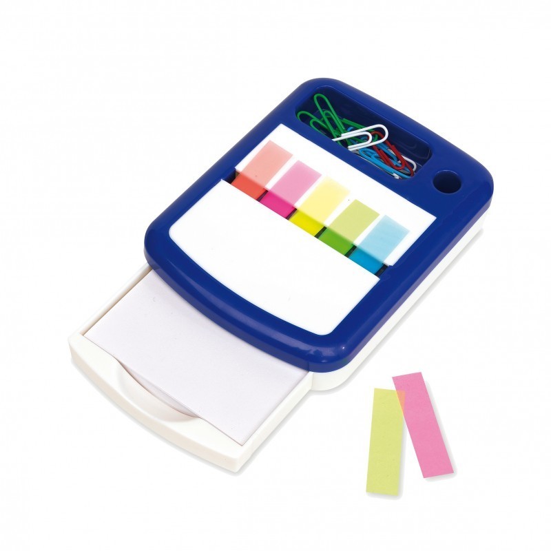 Incluye block de hojas blancas. Dispensador de banderitas de 5 colores diferentes.