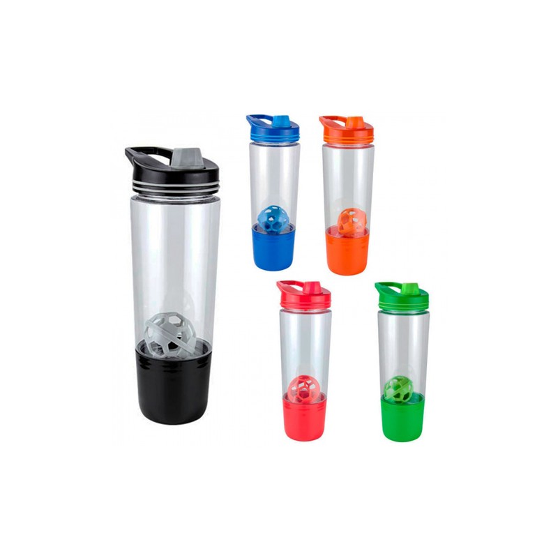Botella mezcladora. Incluye agitador. Cuenta con compartimento especial en la parte inferior y agarradera.