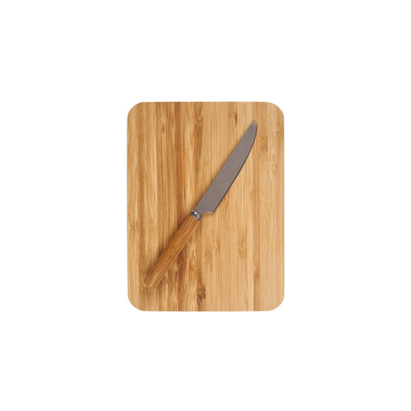 Tabla pequeña. Incluye un cuchillo de acero inoxidable con mango de madera.