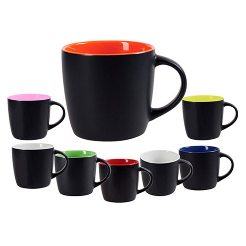 Taza de cerámica recubrimiento mate en color negro, interior brillante en color.