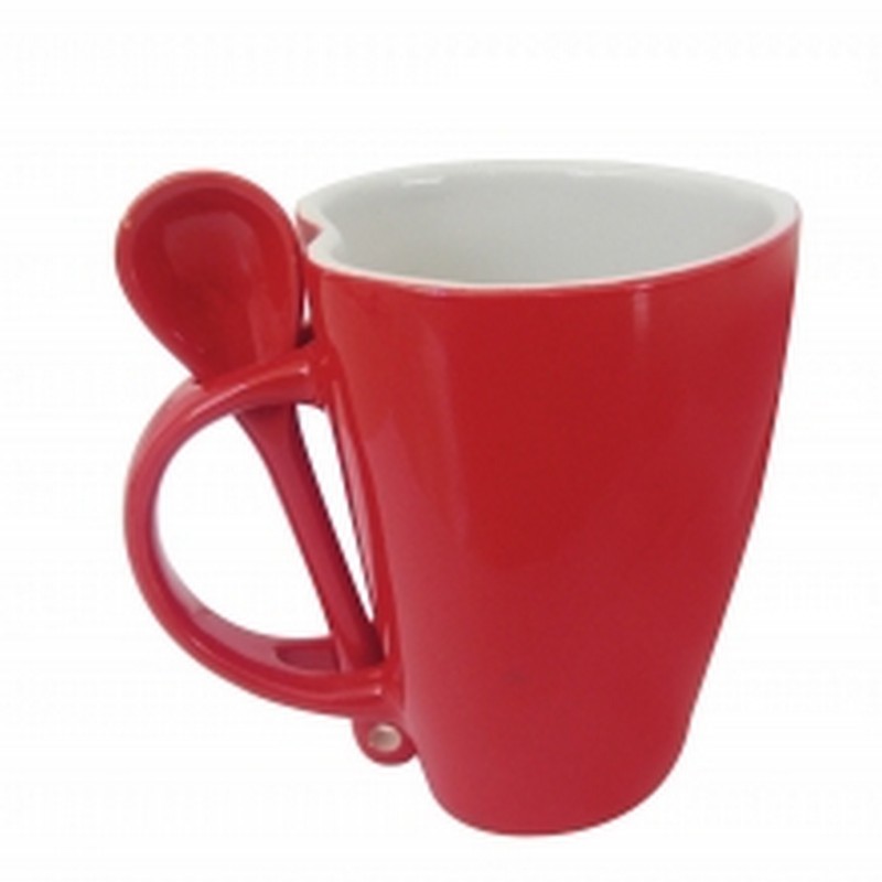 Taza en forma de corazón con porta cuchara en asa y cuchara incluida.