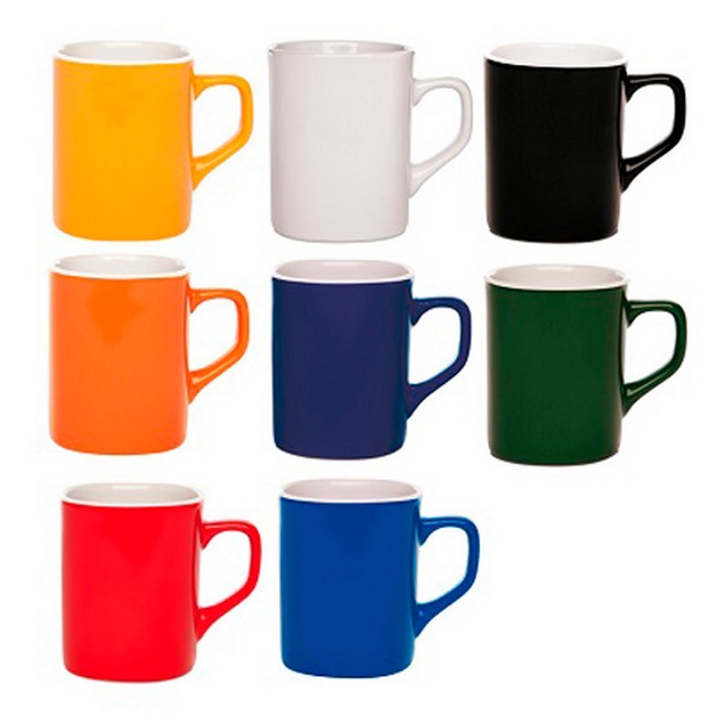 Taza cuadrada con interior blanco y exterior de color.