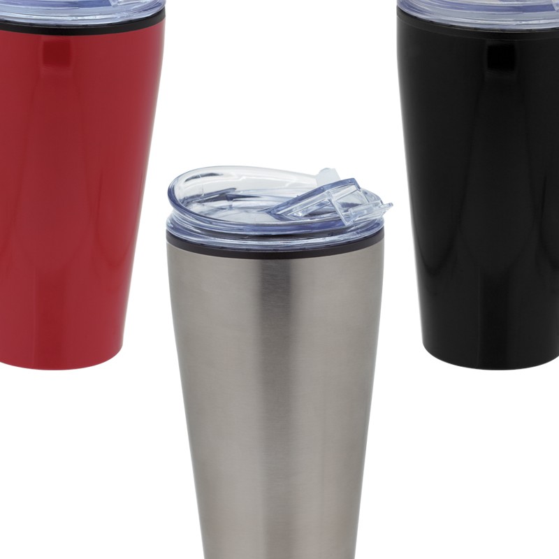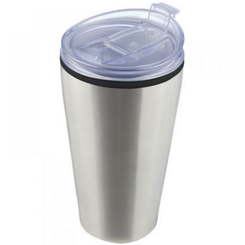 Termo de acero con doble pared para mantener la temperatura de tus bebidas por más tiempo. Capacidad: 475 ml.