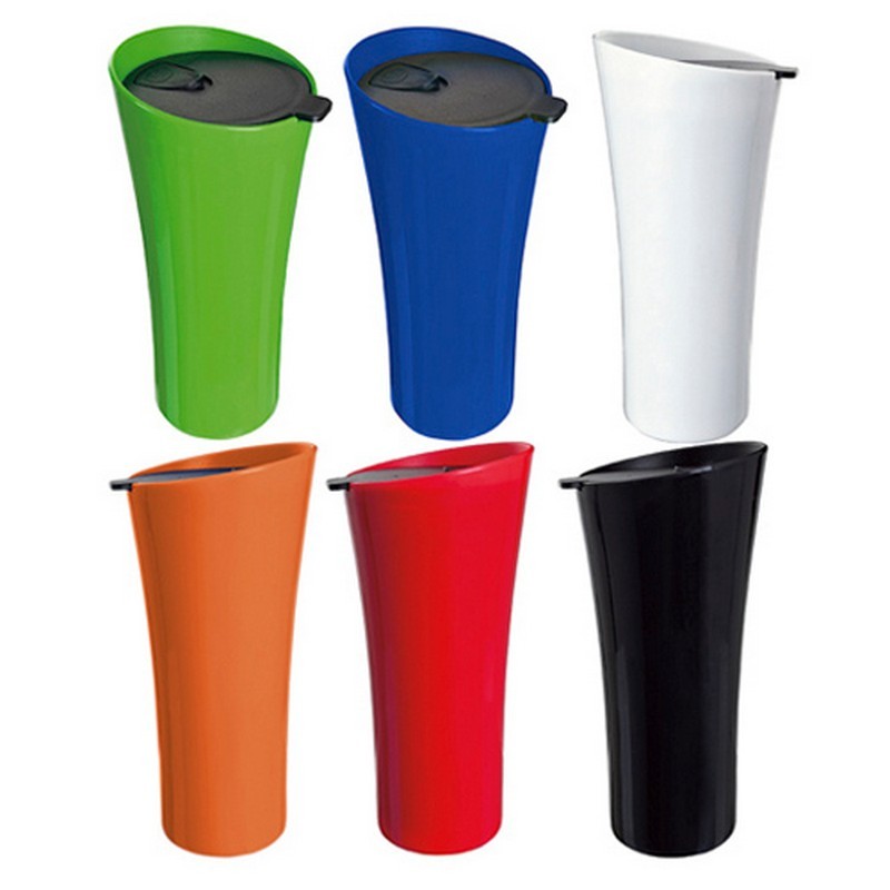 Termo con doble pared, tapa de presión e interior en color negro.
