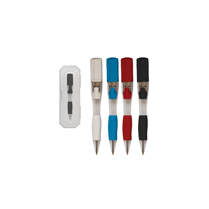 Bolígrafo con acabado Frost y USB integrada. Capacidad 4GB. Incluye estuche transparente de plástico.
