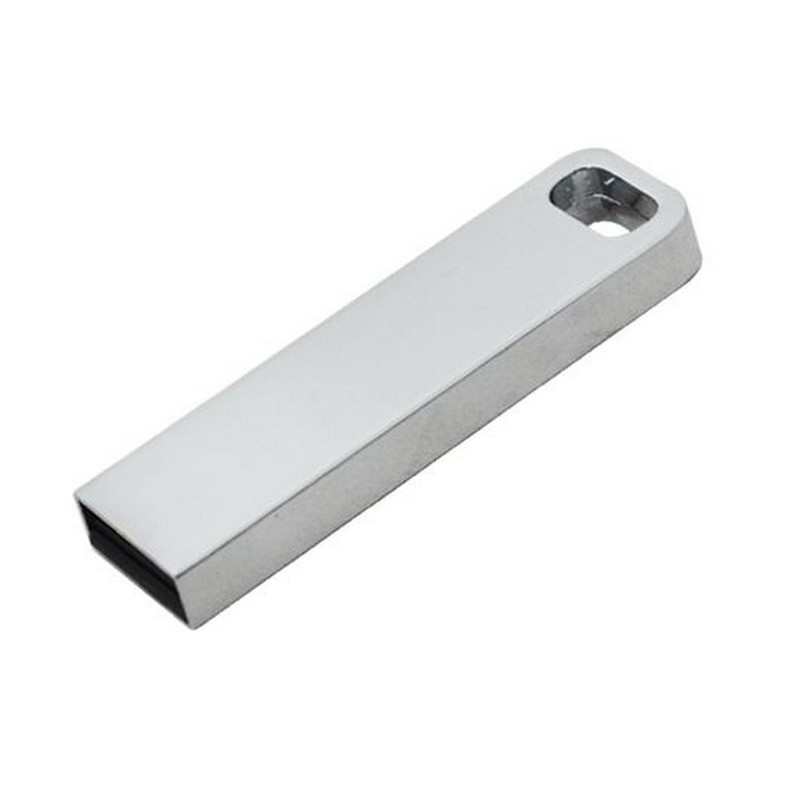 USB en forma rectangular, cuenta con orificio para colguije.