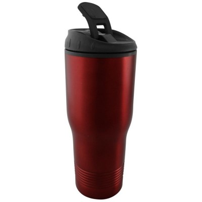 Vaso de 520 ml, doble pared: interior de plástico y exterior acero inoxidable, tapa tipo rosca y base compatible con la mayoría de los portavasos de los automóviles.